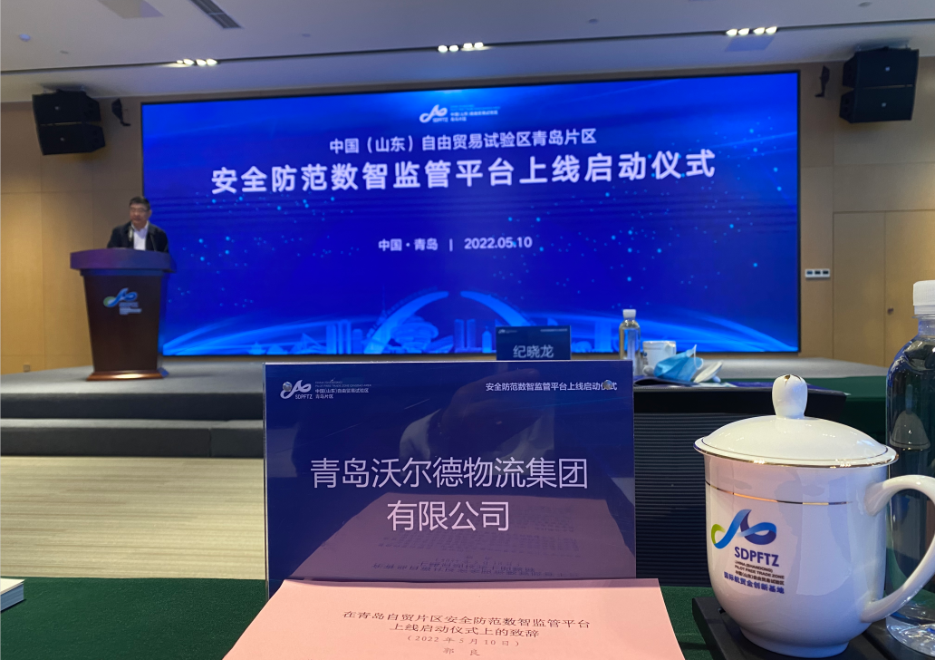 5月10日上午,青岛沃尔德物流集团应邀参加中国(山东)自由贸易试验区青岛片区安全防范数智监管平台上线启动仪式,青岛沃尔德物流集团总裁郭良作为企业代表发言致辞。