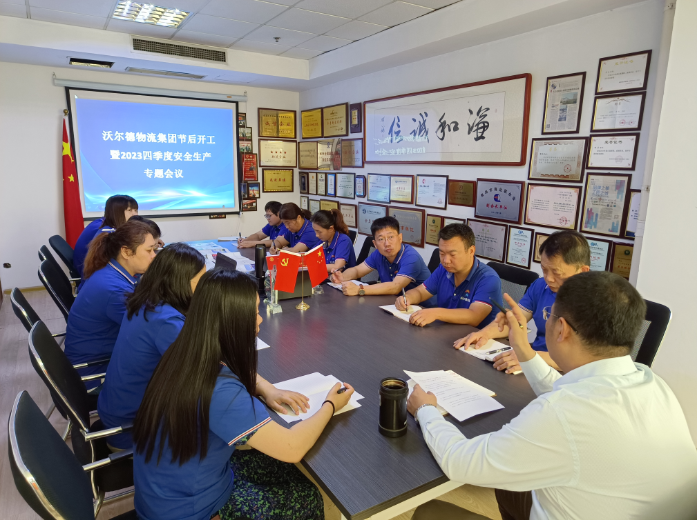 2023年10月7日,青岛沃尔德物流集团召开节后开工暨2023四季度安全生产专题会议,各部门负责人及相关人员参加会议。