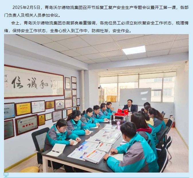 青岛沃尔德物流集团召开节后复工复产安全生产专题会议暨开工第一课