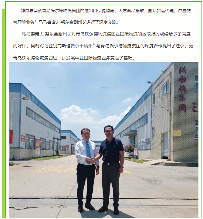乌兹别克斯坦费尔干纳州副州长莅临青岛沃尔德物流集团参访交流