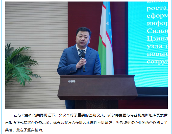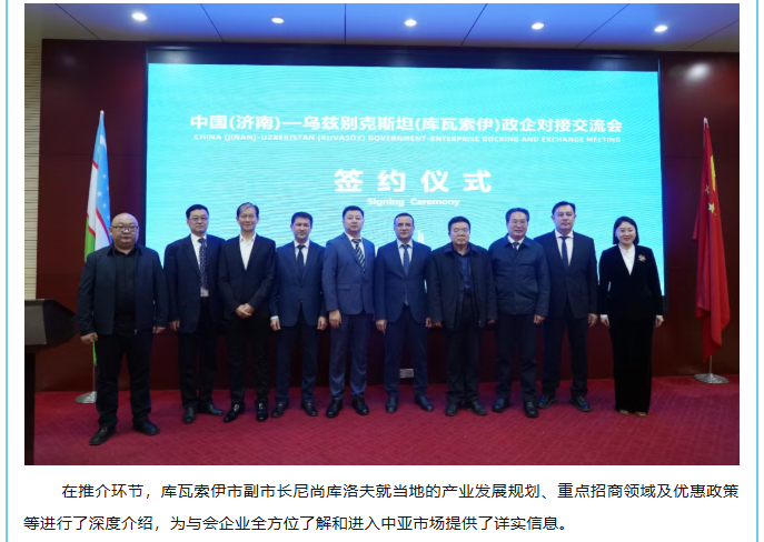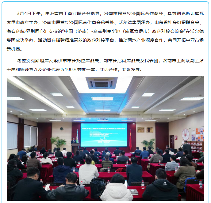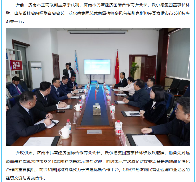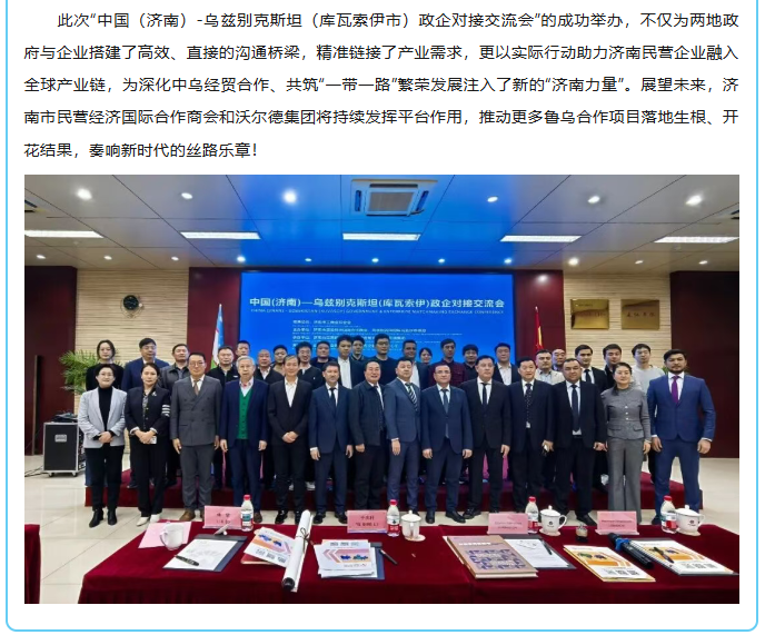 中国(济南)—乌兹别克斯坦(库瓦索伊市)政企对接交流会在沃尔德集团成功举办