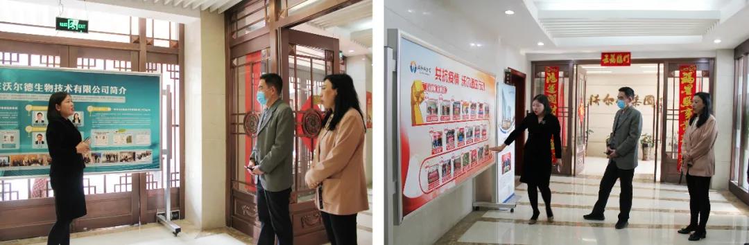 市委统战部非公有制经济工作处处长刘健、高新区党群工作部人才统战办公室副主任丁一涵等陪同调研,山东沃尔德生物技术有限公司总经理陈照花、沃尔德集团办公室主任李群接待调研。
