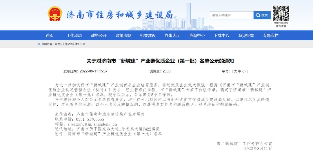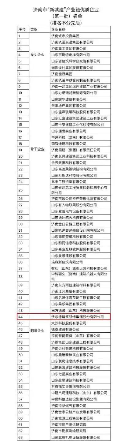 喜报|热烈祝贺沃尔德建筑装饰集团入选济南市“新城建”产业链明星企业