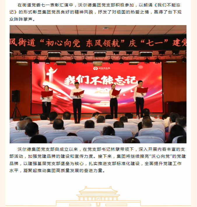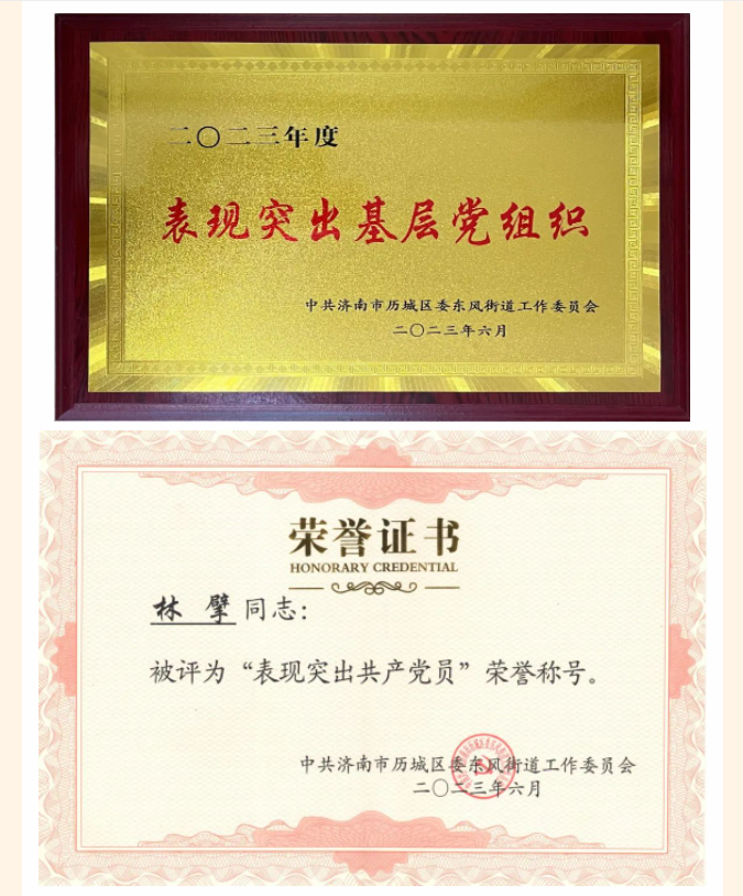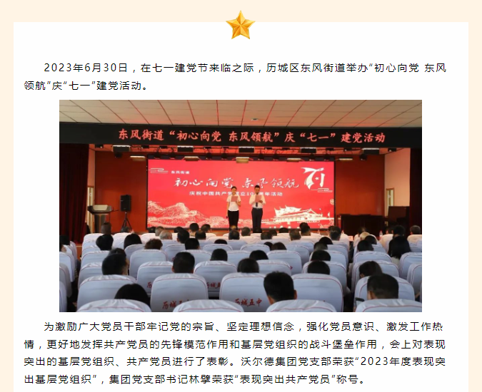 热烈祝贺沃尔德集团党支部荣获中共济南市历城区委东风街道工作委员会授予的多项荣誉