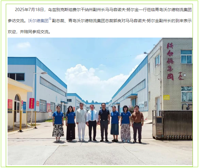 乌兹别克斯坦费尔干纳州副州长莅临青岛沃尔德物流集团参访交流