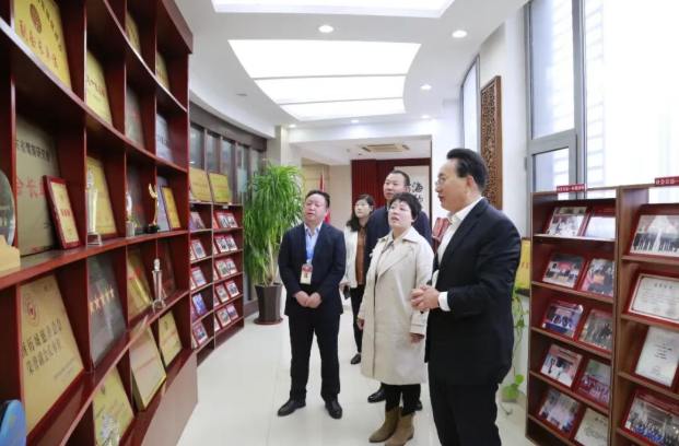 签约授牌仪式前,林擘董事长带领赵德艳院长一行参观了集团的党群阵地及部分子公司,详细介绍了集团“多元化发展、专业化经营”的战略布局、各业务板块的创新成果,以及在党群建设、企业文化建设方面的实践成效,获得校方高度评价。