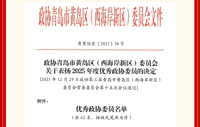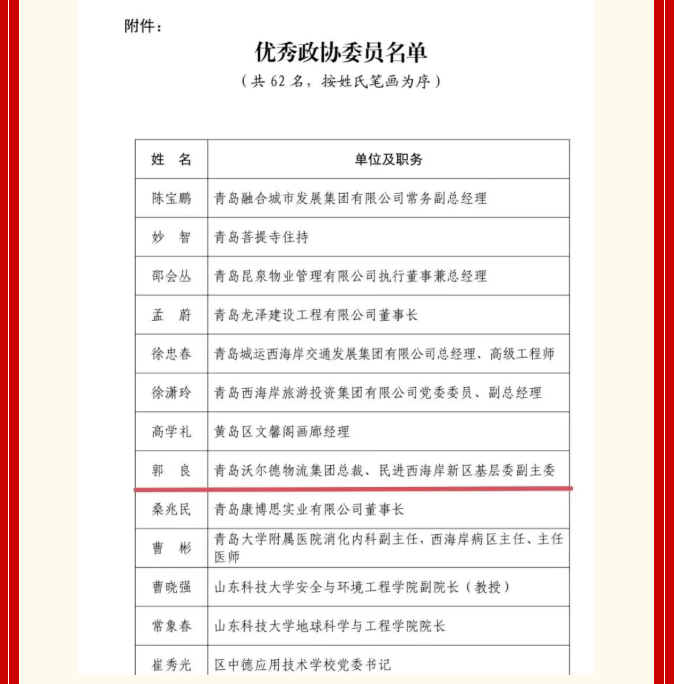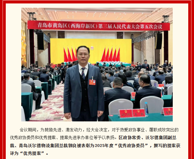 青岛沃尔德物流集团总裁郭良被表彰为2025年度“优秀政协委员”