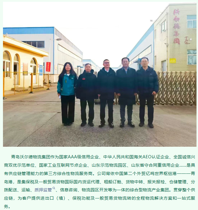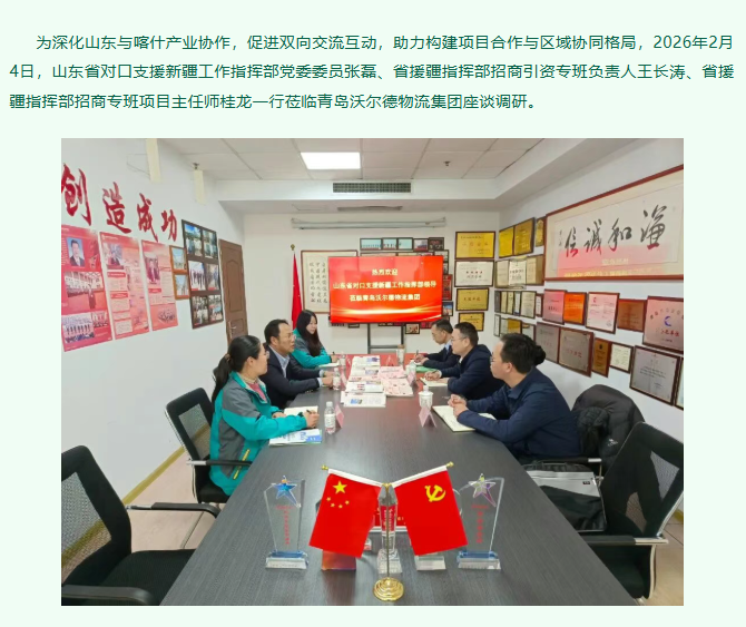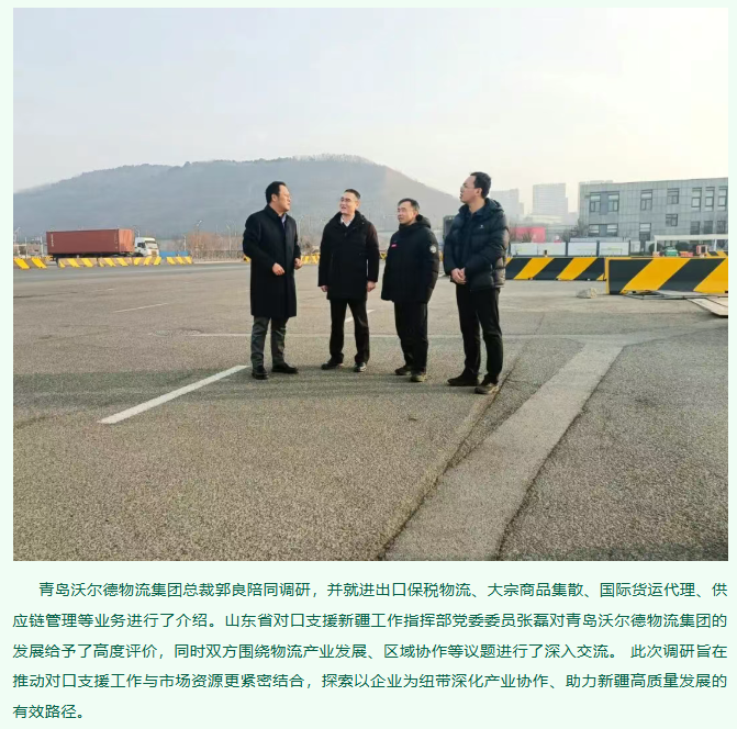 山东省对口支援新疆工作指挥部领导一行莅临青岛沃尔德物流集团调研